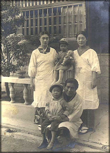 | 昭和15年頃に当社が建築した1ランク上の4軒長屋の借家住宅と若いおかみさん達 |