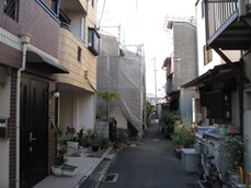 近所は狭い路地が多発。長屋だらけで、独特の街並みです。