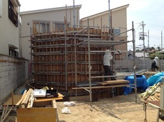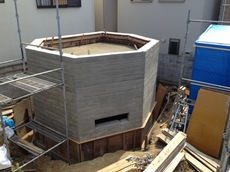 平野区・T邸新築工事で、ようやくRC倉庫の型枠が取れました。