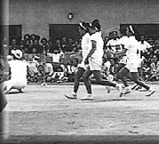 | 競技内容等は、今とあまり変わりないが、何と言っても花形種目は、クラス代表による対抗リレーで、選手に選ばれた児童はここぞとばかり、観客の熱い歓声にこたえ燃えていたようだ。他には、PTA役員対教職員とのリレーで、毎年思い出しても笑えるエピソードの一つや二つがあり、なかなかの人気種目になっていた。ちなみに、教職員の圧倒的勝利が多かったそうであるが、記録は無い。 |