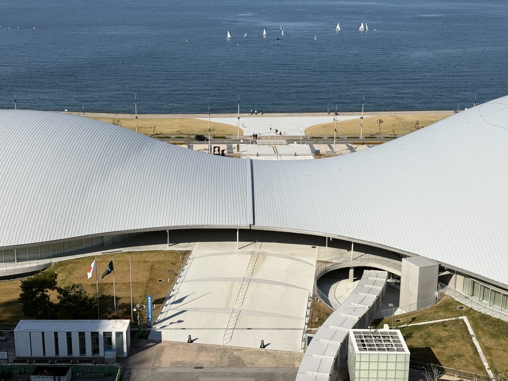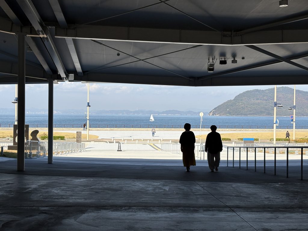 景色が映画館のように切り取られ、潮風が抜け、ヨットがゆらりと横切る。