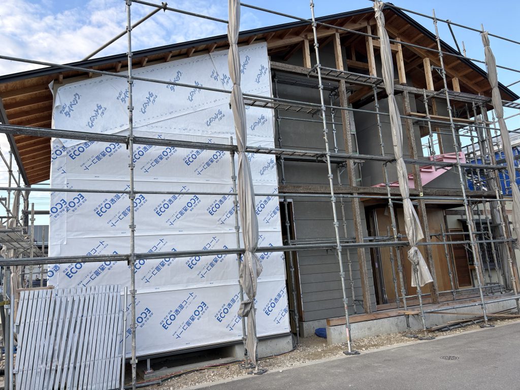 前回の投稿に続いて、現場では順調に外装工事が進んでいます