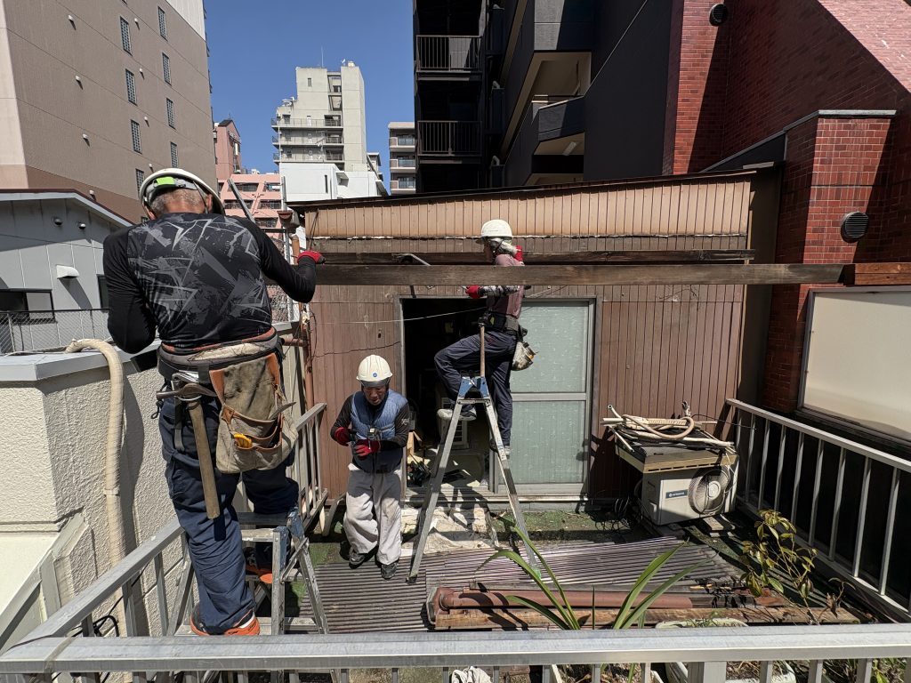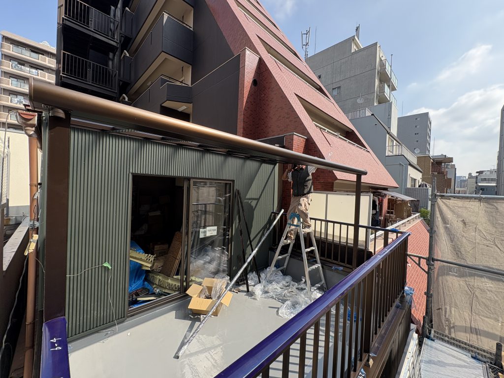 西区のオフィス街に建つ小さな住宅の屋上の防水工事です。