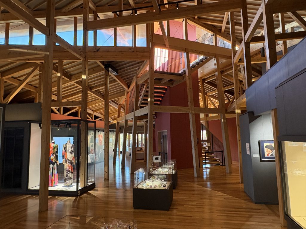 ミュージアムとして大きくはない建物ですが、木組みを見ると、仕口で組まれ、下から金物が全く見えない純粋な在来木造で作られているのを見て、木造を主とする工務店として改めてハッとさせられる建築でした。建築としての形は挑戦的でありながら、技術や構造として無理がない範囲で、伝統的なことを蔑ろにしないその姿勢は、私たち地域工務店こそ持たないといけない思想だなと思いますし、休みボケしていた頭を新たな年に向けて切り替えてくれた感じがしました。