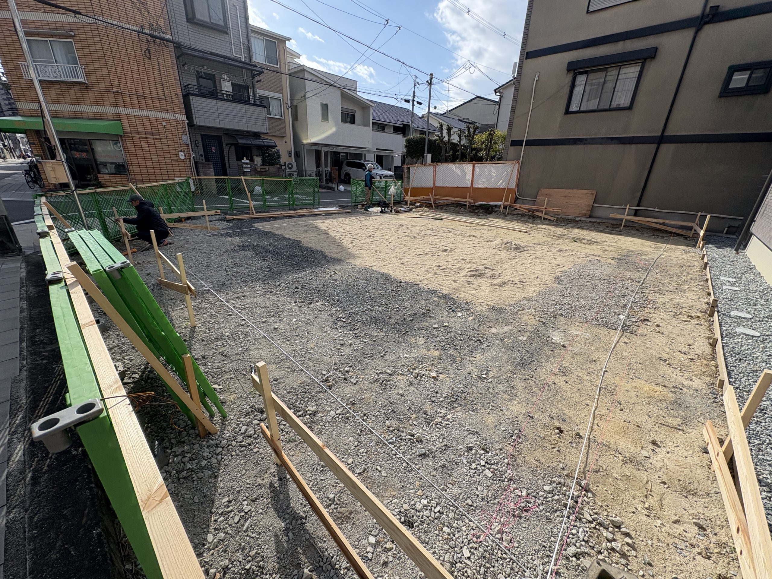 建物の位置と基礎の高さを示すやり方をしています。↓