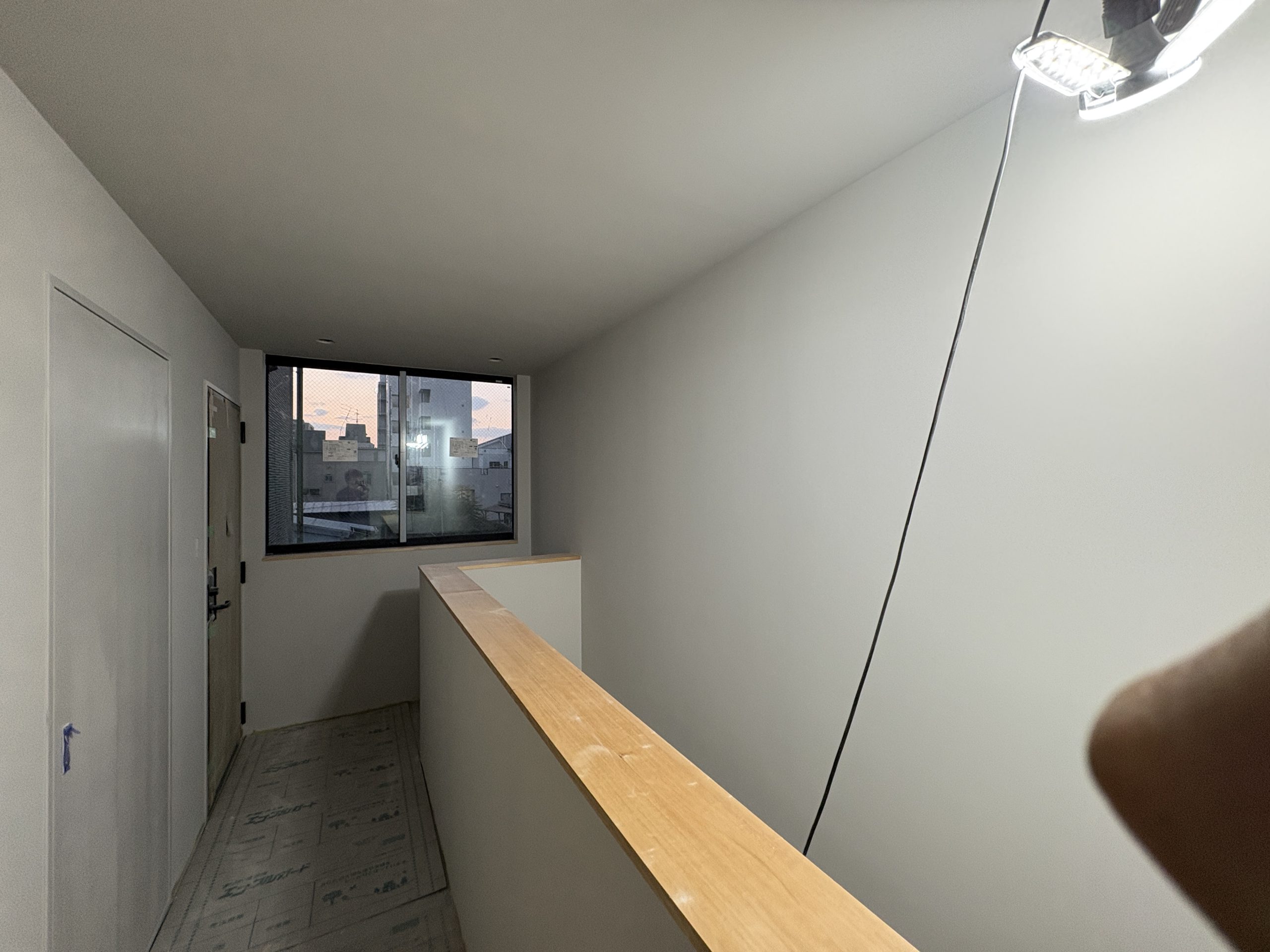 腰壁の笠木が共用部の空間にアクセントとして存在していて、他にない共用空間になっていると思います。