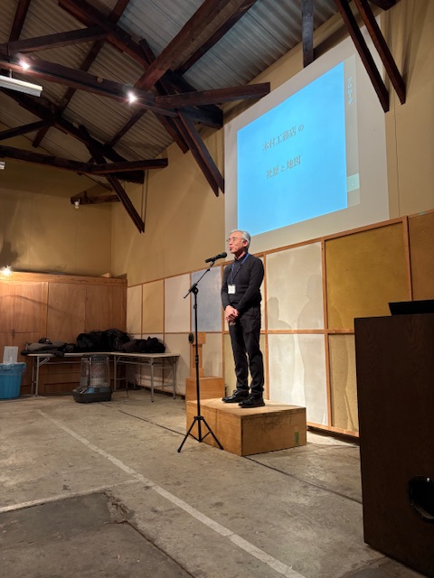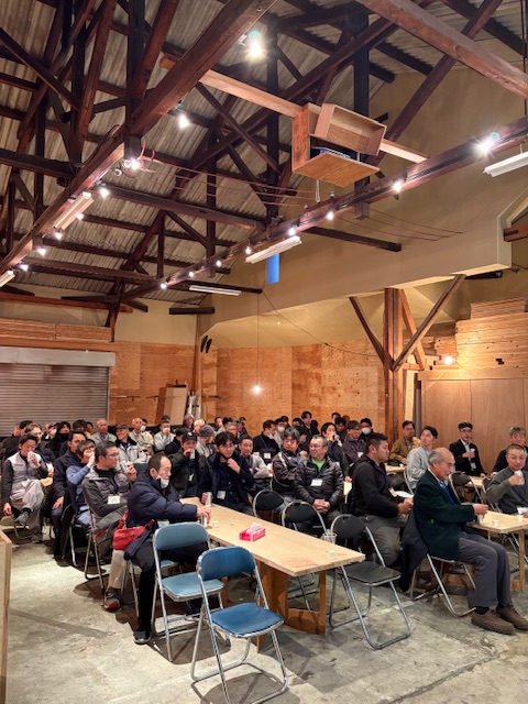 こちらは社長のあいさつとレクチャーに耳を傾ける協力業者にみなさんです。