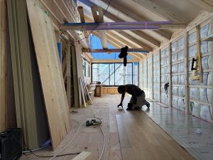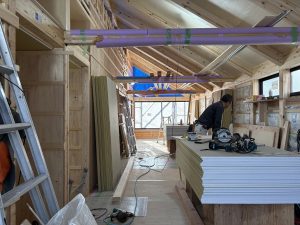 さてと、(堀賢太建築設計事務所)柏木町の家新築工事では美しき軒天が仕上がりました。