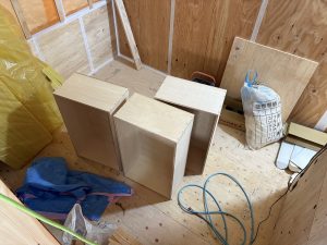 埋め込まれるボックスを増産してもらったり、内部の下地仕上げへ向けて化粧部材などを納めてもらっていっております。