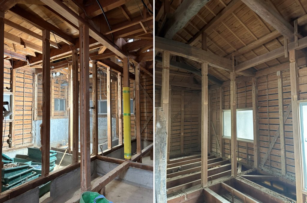 構造が露わになり、補強方法等検討しながら慎重に進めていきたいと思います。