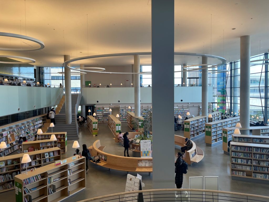おにクルは子育て施設として充実しているだけでなく、図書スペースが階ごとにデザインや表情が変わり、いろんな居場所があり、何時間でも居れる素敵な施設でした。