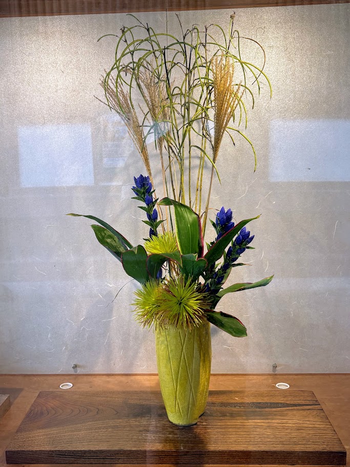 そうそう通路の陳列のなかに生け花が飾ってあって、歩いて通り過ぎながら、眺めて「秋の気配」を感じた秋分の日の朝。写真撮って、家に帰ってから見たら、ガラスの反射越しに「私の気配」もあった。あれっ、漢字の「秋」と「私」はあらためて似ているねっ…..